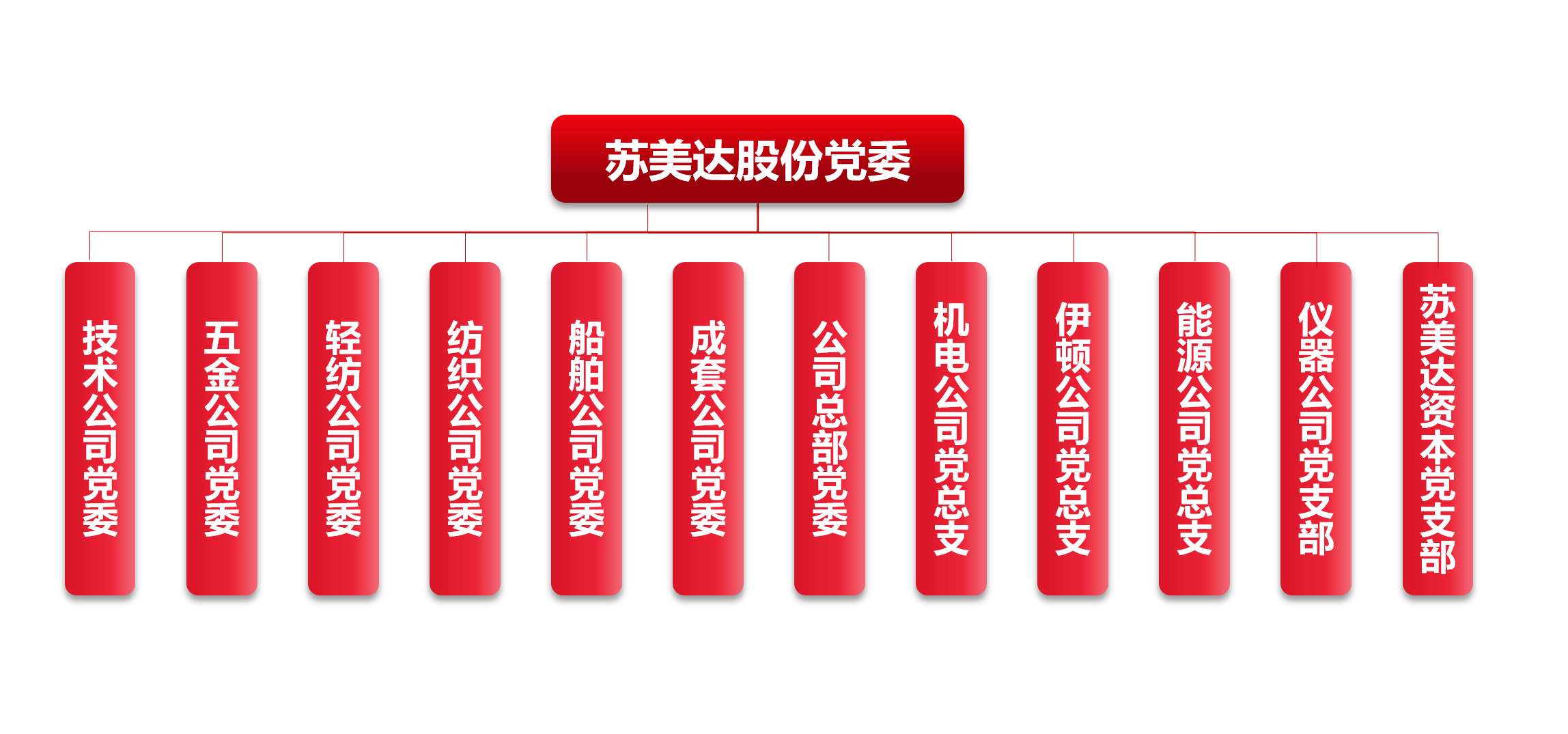蘇美達股份有限公司黨委目前下設黨委6個,黨總支4個,黨支部114個(含3個直屬黨支部),共有黨員1640名。